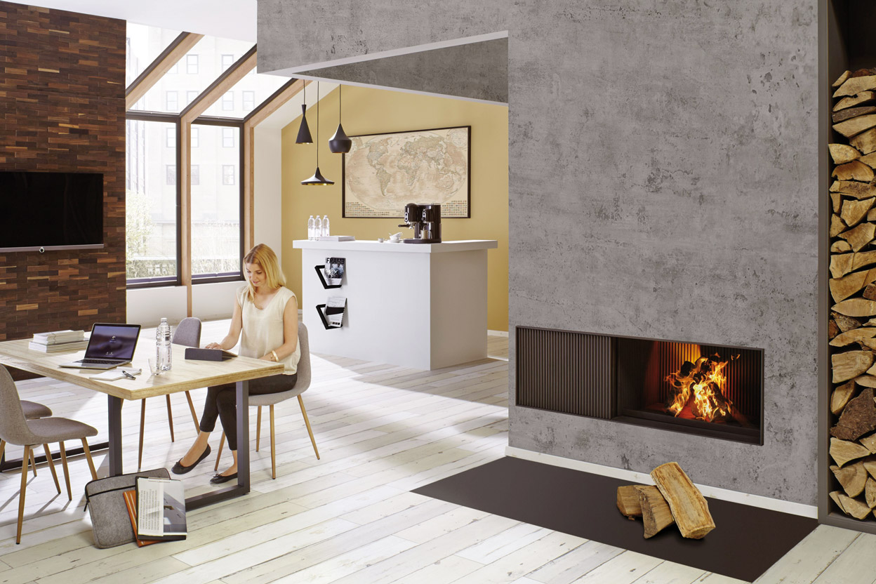 Der offene Kamin ist der Klassiker unter den Kaminen und die älteste aller Wärmequellen überhaupt. Seit Jahrhunderten verbreitet er die Leidenschaft des Feuers und die Behaglichkeit des Flammenspiels in den Wohnhäusern. BRUNNER bot die ersten offenen Kamine bereits vor knapp 20 Jahren an. Holzfeuer hören, riechen, spüren – der Urfeuer- Kamin bedeutete immer schon pure Konzentration auf die Sinne, weniger auf Heizleistung. Jetzt sind die offenen Kamine wieder erhältlich; in neuer Optik, ausgestattet mit modernster Technik. So lässt sich das Atmosphäre-Feuer als gestalterisches Element perfekt in Haus und Architektur integrieren und funktioniert auch in energetisch ausgefeilten Neubauten problemlos. Gerade die dichten Gebäudehüllen machen eine Versorgung der Feuerstätte mit Verbrennungsluft besonders wichtig. Aus diesem Grund verfügen alle BRUNNER-„Urfeuer“ über Verbrennungsluftstutzen mit einem Durchmesser von 250 Millimeter. Mit der Leitungszuführung ins Freie strömt immer genügend Verbrennungsluft in den unmittelbaren Bereich des Feuers. Zugeffekte oder ein kritischer Unterdruck im Aufstellraum lassen sich auf diese Weise zuverlässig vermeiden. Die nahezu druckverlustfreie Zuluft-Führung wurde mit Hilfe einer speziellen Software entwickelt und optimiert.