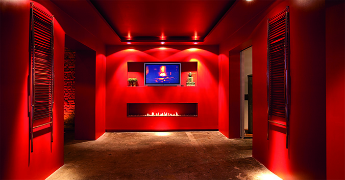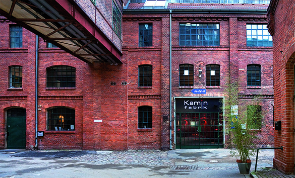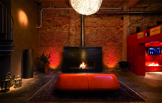Die Ausstellungsräume befinden sich in den Gebauer Höfen, einer der ältesten Industrieansiedlungen und ehemalige Textil- und Maschinenfabrik des 19. Jahrhunderts. Ein großer Teil der Ausstellung wurde in genau diesem alten Fabrikcharakter renoviert und dient zur Repräsentation, wird aber auch für Veranstaltungen vermietet. „Mit ein paar Schauspielern in alten Kostümen kann man sich ganz in die damalige Zeit zurückversetzt fühlen“, erzählt uns Volker Hausmann. Der zweite Teil der Ausstellung ist im Gegensatz zum Vintage-Ambiente der Fabrik eher modern gehalten. Nach einem Umbau wird dieser Bereich einen Showroom mit zusätzlichen 140 Quadratmeter Fläche haben. Der neue Teil wird puristische Kaminanlagen sowie Sonderanfertigungen und Unikate zeigen.