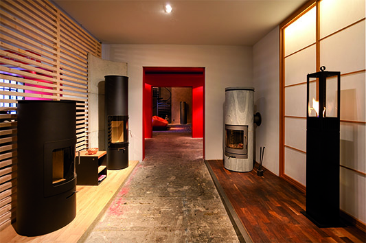 In unmittelbarer Nähe zum Berliner Tiergarten präsentieren die beiden Ofenspezialisten Volker Hausmann und Kai Schumann in ihrer „Kaminfabrik“ auf 200 Quadratmetern hochwertige Designkamine.