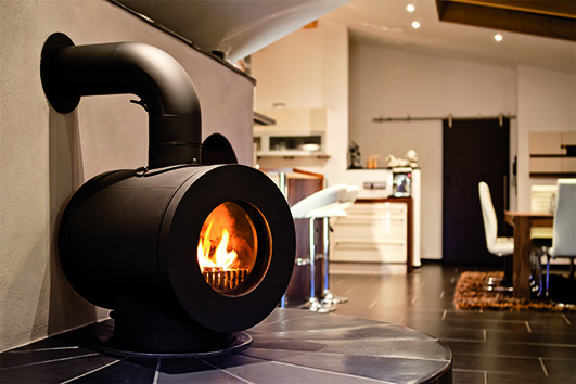 Der Ofen selbst ist vom Hersteller Firetube und alles anderes als gewöhnlich. „Wir hatten bereits in unserer vorherigen Wohnung einen Specksteinofen. Für unseren Neubau musste es nun etwas besonderes sein.“, berichtet Anton Nothofer. Genau dies fanden die beiden bei einem Besuch bei Ofenbauer Andreas Zapfe. „Ich erinnere mich noch gut, es war der zweite Termin bei uns in Landshut da entdeckten Anton Nothofer und Alexandra Grabler bei uns einen noch völlig unfertigen Firetube-Ofen. Sofort war das Feuer für den unkonventionellen Ofen entflammt – ganz ohne mein Zutun. Die Idee mit dem Spiegel wurde dann aus der Notwendigkeit geboren, dass der Ausstellungsofen aufgrund seiner Gesamttiefe nicht im Objekt zu realisieren war, eine flachere Variante aber die direkte Sicht aus dem Ofennest ins Feuer verhindert hätte.“, so Andreas Zapfe.