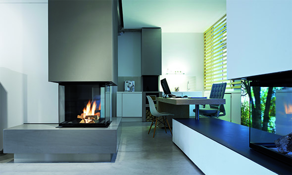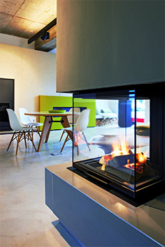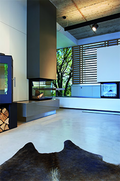 Bei der Gestaltung dieses Showrooms für hochwertige Kamine ist es gelungen, auf kleinstem Raum unterschiedliche Feuerstellen in ihrer Anwendung und Wirkung zu inszenieren. Im historischen Stadtkern von Wiedenbrück entstand eine unverwechselbare Ausstellung mit einem einzigartigen Designkonzept (realisiert von Brandherm + Krumrey Interior Architecture). Durch genaue Planung bis ins kleinste Detail werden die 60 qm Fläche optimal ausgenutzt. Geschickt wurde beispielsweise eine Kaminwand als multifunktionaler Raumtrenner eingesetzt. Dank des offenen, neutralen Raumkonzepts kann der Kunde mit einem Blick unterschiedlichste Kamin- bzw. Feuersitua- tionen auf sich wirken lassen: von Kaminen mit Holzbefeuerung über Gaskamine und einzelne Feuerobjekte bis zu einer Grillstation. Unter Verarbeitung reduzierter Materialien wie Beton und bemalten Holzwänden in schlichter Formensprache lenkt man den Fokus deutlich auf die Produktpräsentation. Das Gestamtkonzept aus Kaminfeuer und Innenraumgestaltung schafft eine einladende, warme Atmosphäre, die die Fas- zination Feuer unmittelbar transportiert und die Produkte in ihrer Wertigkeit erlebbar macht.
