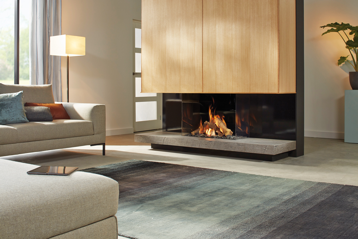 Kaminfeuer, wie Kaminfeuer sein soll. Im Dynamic Flame Burner werden die Brennerdüsen dabei so in den Holzscheit integriert, dass die Flammen wie beim realen Holzbrand direkt aus dem Scheit lodern. Die hohen Scheiben und das (optional erhältliche) entspiegelte Glas bieten eine perfekte Sicht auf das ultimative Flammenspiel. Das dreiseitige Modell kann flach in die Wand, stehend oder schwebend ohne Einfassung eingebaut werden. Mit der kostenlosen DRU Control App bedienen Sie ganz einfach Ihren Kamin, und dank Eco Wave bestimmen Sie das Flammenbild und den Gasverbrauch selbst. Dank der DRU-Innovation PowerVent sind Sie nämlich nicht mehr an einen bestimmten Ort oder einen bestehenden Rauchkanal gebunden.