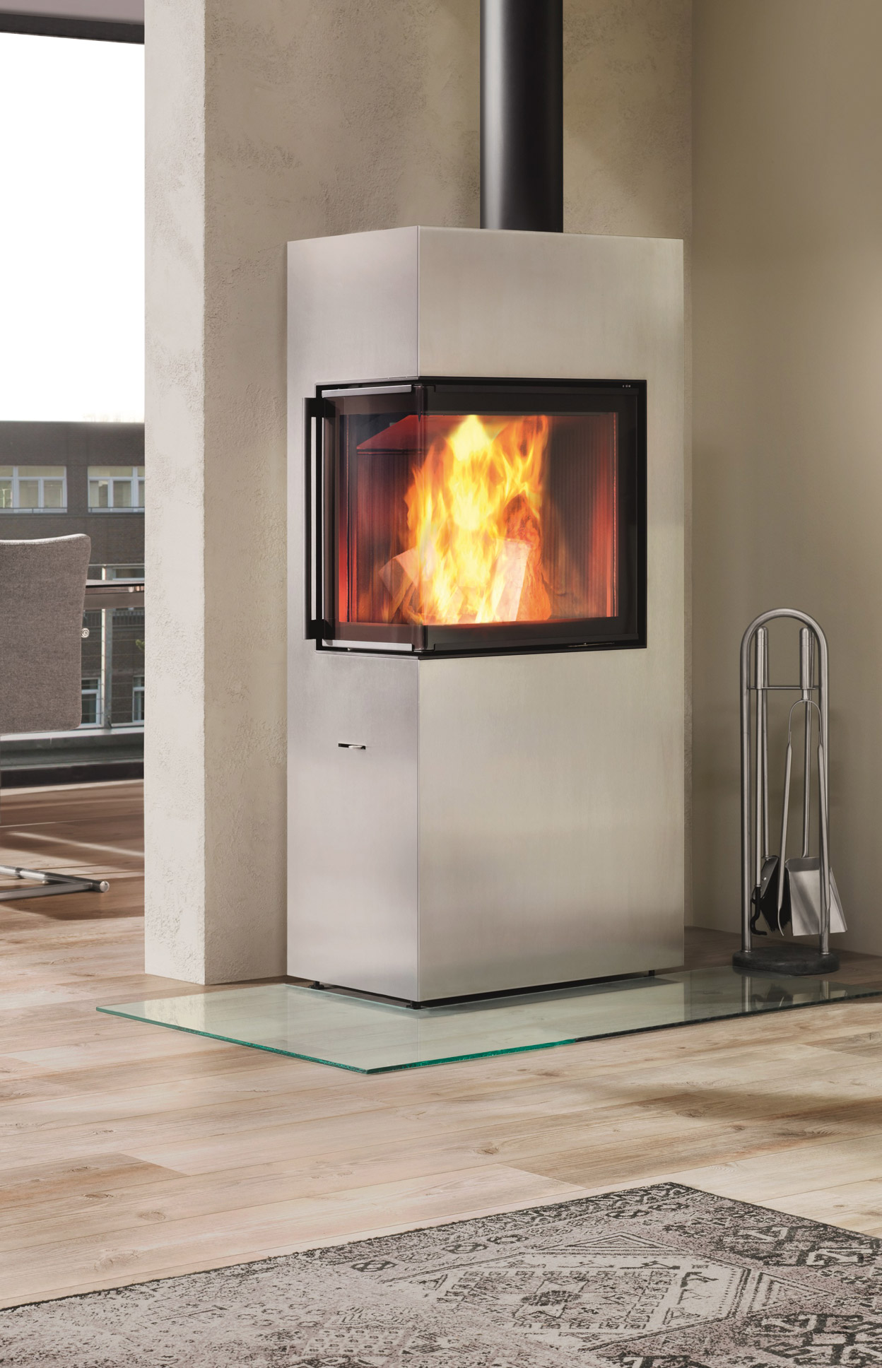 PREMIUM A-3RL-60H, ATHENE (ENTWORFEN VON MARKUS RÜEGG) SCHENKT UNVERGESSLICHE MOMENTE VOR DEM FEUER, DRU MEASTRO 80/3: KAMINFEUER, WIE KAMINFEUER SEIN SOLL. DIE DREI HOHEN SCHEIBEN GEBEN DIE SICHT AUF DAS FEUER FREI.