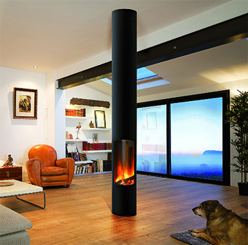 Mit einem Außendurchmesser von nur 33 cm ist dieser Kamin zudem auch sehr platzsparend. Es gibt ihn in feststehender oder drehbarer Ausführung, um Installationsanforderungen übereck, mittig oder in Wandnähe gerecht zu werden. Des Weiteren gibt es auch ein feststehendes Modell mit Sockel und bald auch eine gasbetriebene Version. Die bereits breit gefächerte Produktpalette der Innenraummodelle des Markengründers Dominique Imbert wird so gekonnt erweitert.