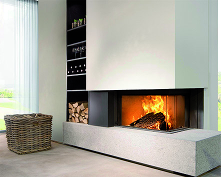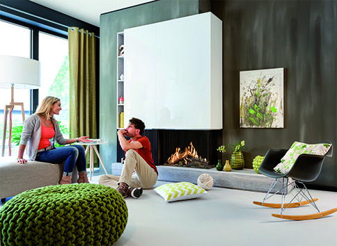 Mehrere von Kal-fire patentierte technische Innovationen ermöglichen es dem Innenraumgestalter, besonders homogene Interieurs zu konzipieren. Einen geschlossenen Kamin erfolgreich in die bestehende Raumarchitektur zu integrieren ist vor allem eine Frage von Proportionen. Deshalb ist es wichtig, auch besonders kleine oder große Feuerstellen mit unterschiedlich hohen Frontscheiben anzubieten. Ästhetischer Erfolg hängt aber auch von der architektonischen Übereinstimmung der Feuerstelle mit ihrer jeweiligen Umgebung ab. Hier kommt die für Kal-fire typische rahmenlose Glasfront zum Tragen. Sie ermöglicht es, dass Feuerraumrückwand und Feuertisch fugenfrei bis zur Frontscheibe verlaufen und man so den Eindruck einer offenen Feuerstelle ohne jegliche störende Einfassung erhält. Die Schönheit des Flammenspiels steht dabei bei den Holz- oder Gaskaminen von
