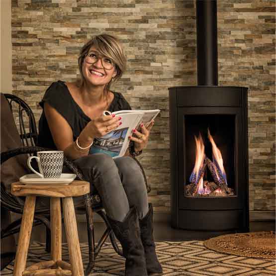 Die schönsten Flammen im Gasbereich bietet Tali, der über die gleiche Brennertechnik wie die Modellreihe Lenga verfügt. Seine ovale Form passt zu jeder Wohnung und zu vielen Innenräumen.