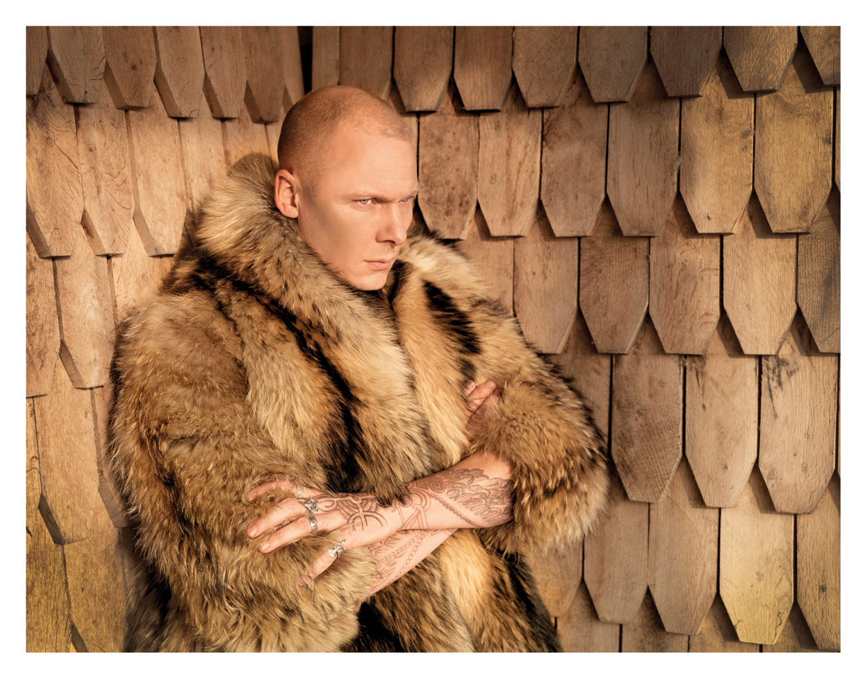 „Wie wohl alle Jungen habe ich schon immer einmal eine eigene Burg haben wollen,“ verrät der Designer im Gespräch mit FIRE Design. Daher stand von Anfang an fest, dass das Haus, an dessen Planung Lyngvild maßgeblich beteiligt war, im Wikinger-Style gestaltet werden sollte. „Ich stamme selbst von dieser alten Tradition ab und kann meine Vorfahren bis zu den großen dänischen Wikingerkönigen zurückverfolgen.“ Typisch für diese Stilrichtung ist die Dominanz des Materials Holz. Rohes, unbehandeltes Eichenholz ist demnach neben anderen nordischen Materialien wie Speckstein aus Finnland ohne Zweifel formgebendes Element im Haus des Paares.